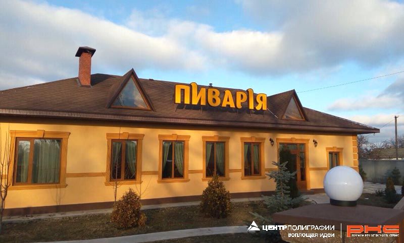 Я думаю многие видели это красивое здание, построенное по пути в Днепр в с. Елизаветовка. Вот сейчас строительство подошло к концу и завершающим этапом как всегда выступил монтаж стильной вывески, естественно спроектированной и изготовленной нашей компанией.