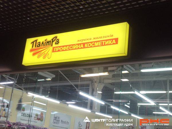 Изготовление и монтаж вывески для отдела `Палитра` в ТЦ Терра