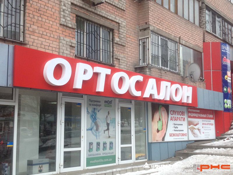 Изготовление и монтаж вывески со световыми буквами для компании Медтехника. г. Днепр, пр. А.Поля, 59