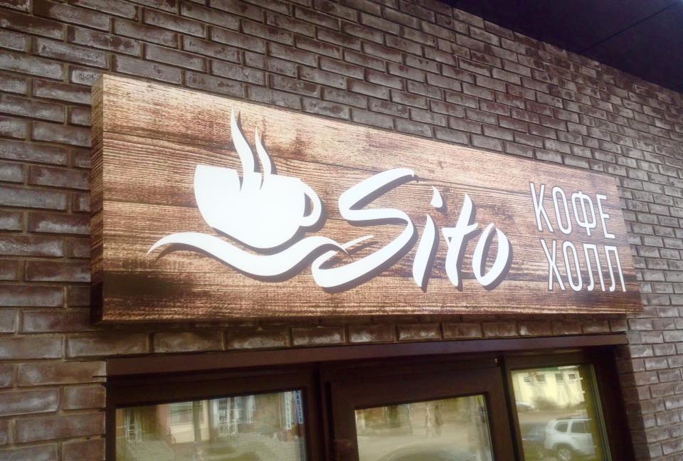 Изготовление и монтаж вывески на кофе-холл Sito в ТЦ Терре, Каменское