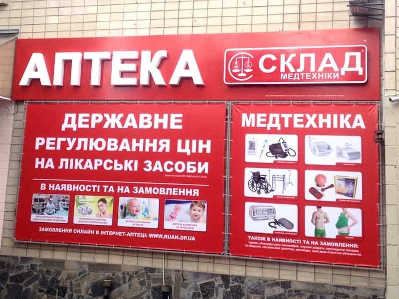 Композитная вывеска со световыми акриловыми буквами. Баннера на металлокаркасах с композитными уголками.