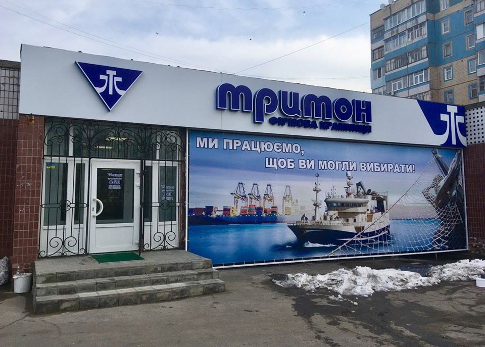 Это внутреннее и внешнее оформление фирменного магазина производственной компании «Тритон». г.Каменское, пр. Победы.