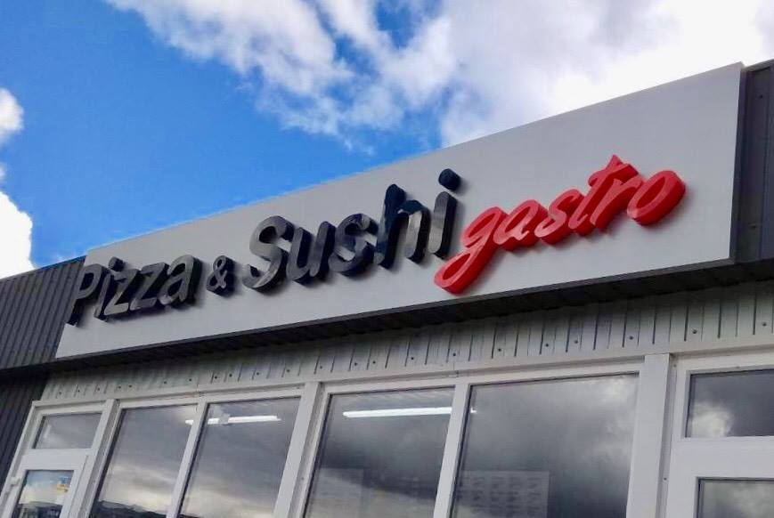 Вывеска для сервиса доставки "Pizza i Sushi gastro"
