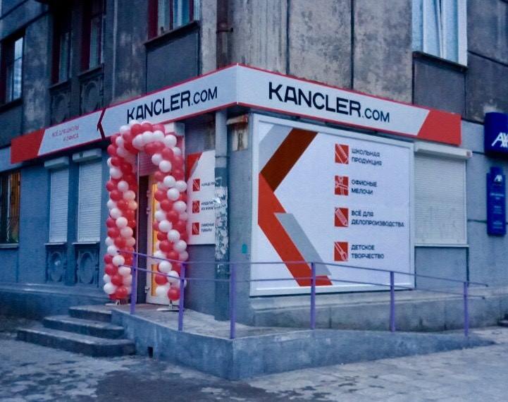 Внешнее оформление нашей компанией магазина "Канцлер" в Каменском