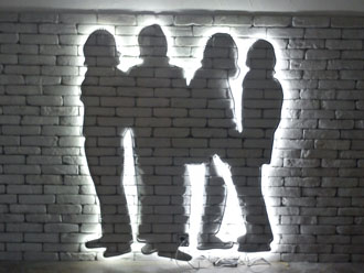 Стена в кафе "The Beatles". Пример оригинального использования светодиодной подсветки. Светящийся контур легендарной "четверки" буквально парит в воздухе |