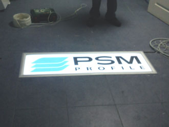 Лайбокс в полу. Необычность данной конструкции заключается в том, что по этому лайтбоксу ежедневно проходят тысячи людей - он смонтирован в полу проходной завода PSM Profile в Полтаве. |
