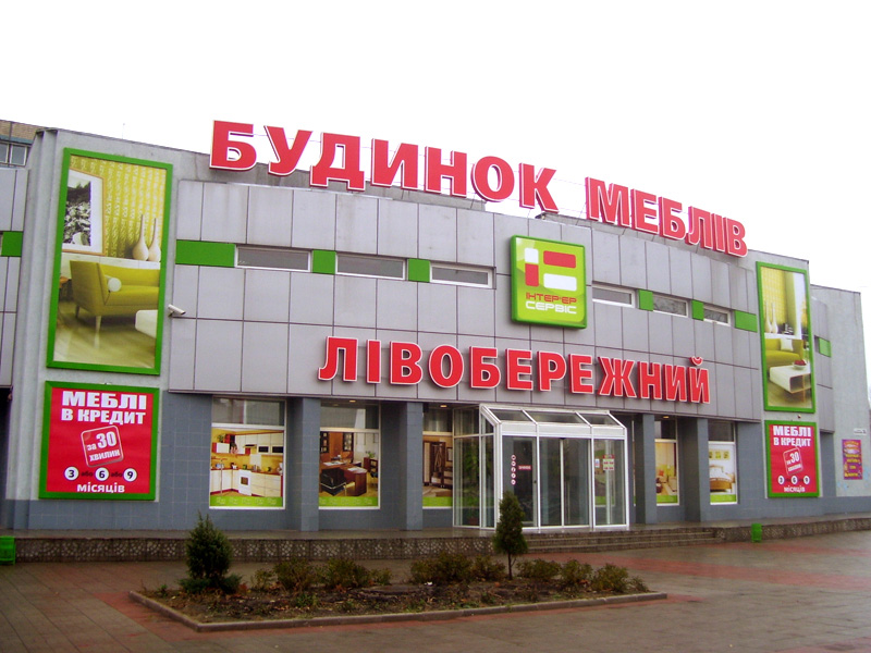 Комплексное оформление здания "Левобережный дом мебели" г. Днепродзержинск |
